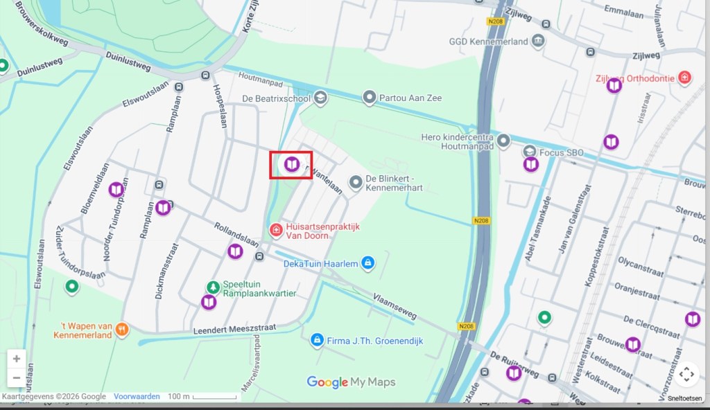 De minibieb staat aan de Pieter Wantelaan, ongeveer ter hoogte van het westelijke einde van het Houtmanpad. Op de kaart van Jacques Zuiderwijk: Minibiebs Noord-Holland vind je deze minibieb (zie foto) en alle andere minibiebs.