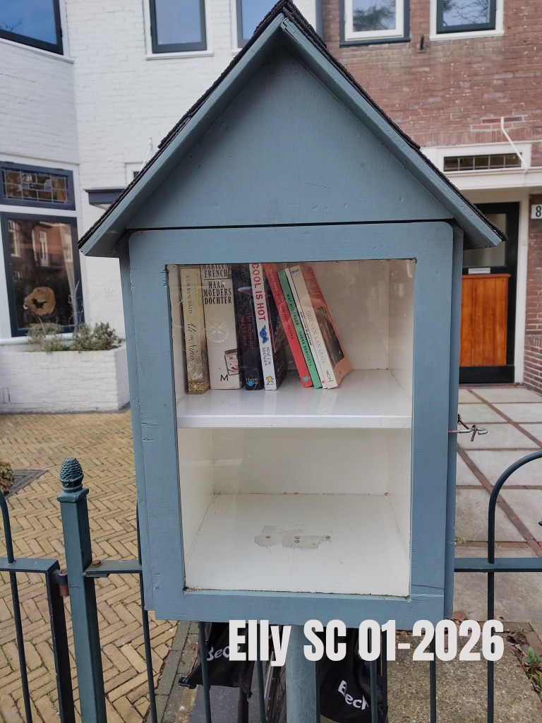 Elly SC was hier op 22 januari 2026 wat wel blijkt uit de karakteristieke foto-met-rugzak. Ze maakte een wandeling via het Houtmanpad, door Overveen en via de Zijlweg weer terug. Mooi biebje, met leuk houtwerk aan de zijkanten en een nét-echt dak. Fijn op ooghoogte ook, er hoeft niet gebukt te worden.