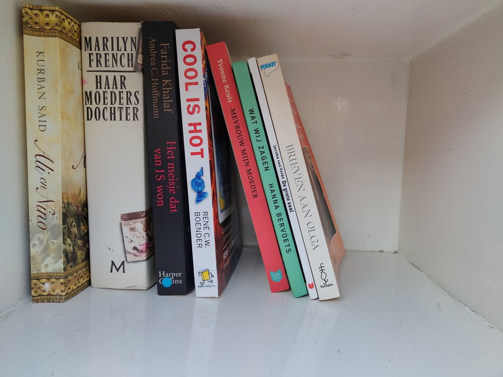 Elly SC: een klein rijtje boeken op 22 januari, het is vast nét opgeruimd. Mij viel Het meisje dat van IS won, op, van Farida Khalaf. Ontvoerd door IS, verkocht, als seksslavin gebruikt, ontsnapt, door familie verstoten want, tja, onteerd, en naar Duitsland verhuisd. Ik liet het staan, te gruwelijk. Ik zette er Cool is Hot bij, een zelfhulpboek met ‘braincandies’.