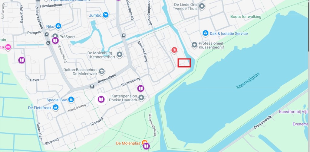 De minibieb staat tegenover de westkant van de Meerwijkplas, achter Vliek 68. Op de kaart van Jacques Zuiderwijk: Minibiebs Noord-Holland vind je deze minibieb (zie foto) en alle andere minibiebs.