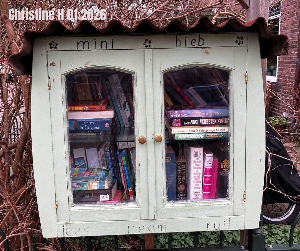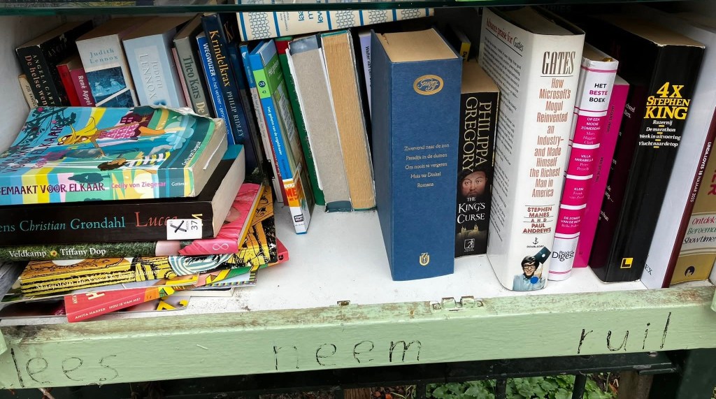In 2024 liep Elly SC hier nog langs. De letters waren nog wat duidelijker, en de boeken stonden netjes in het gelid. En het was zomer …