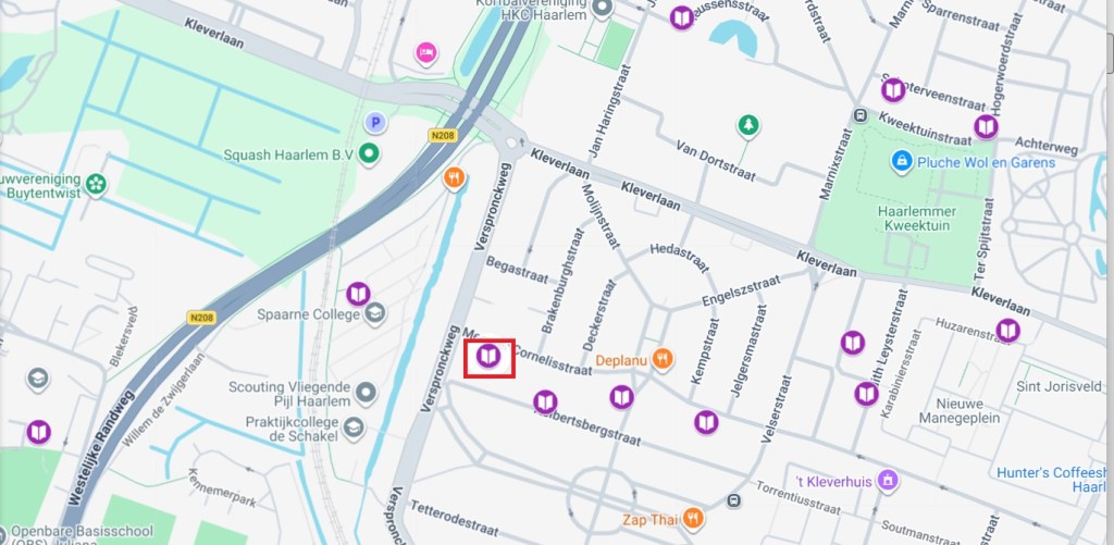 In de Kleverparkbuurt in Haarlem-Noord staat op de Meester Cornelisstraat 108, een van de twee minibiebs in deze straat. In de buurt vind je de Haarlemmer Kweektuin, de Bolwerken en het historische pand de Meester. Vlakbij vind je 3 andere minibiebs.