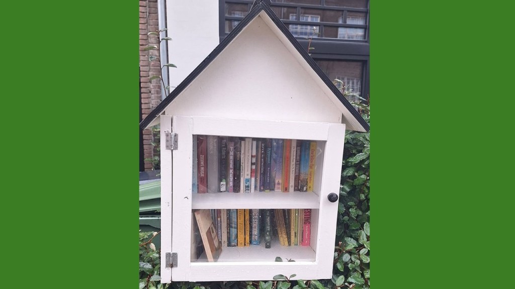 Elly SC: “Ik kan me herinneren dat deze minibieb nét was geplaatst. Toen zat hij barstensvol managementboeken en non-fictie. Ik moest me echt beheersen om niet veel boeken tegelijk mee te nemen. Dit was dan ook mijn favoriete bieb om mijn eigen overtollige non-fictie achter te laten. Inmiddels is de collectie veranderd, en staat er veel fictie in, en nauwelijks nog non-fictie.