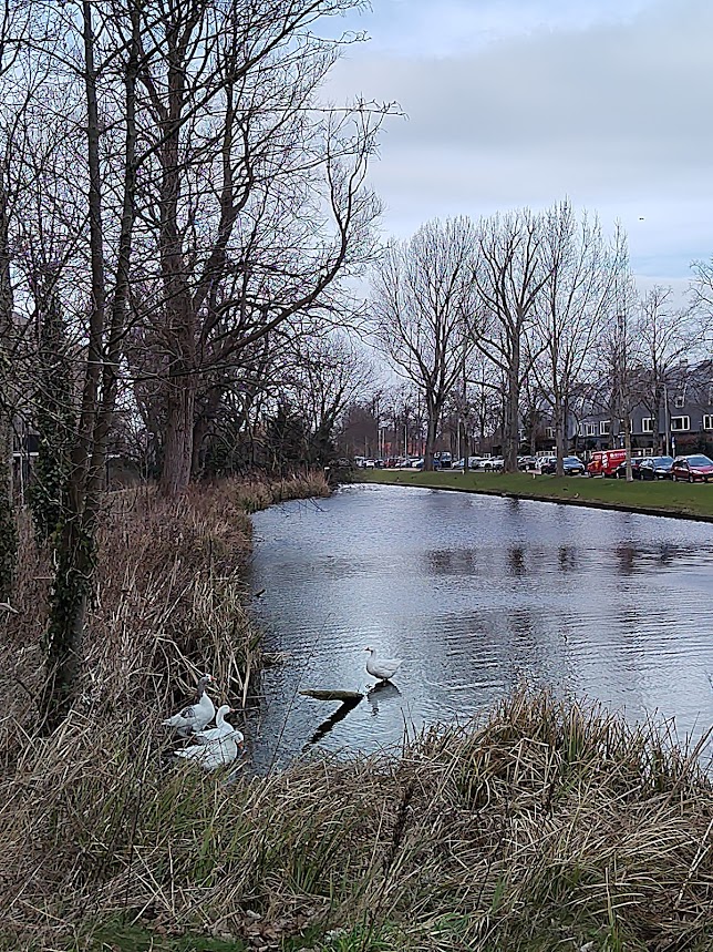 In het noorden is de Zomervaart en de Gouwwetering, met gras, zwanen, ganzen en andere watervogels. En bankjes, om even te lezen.