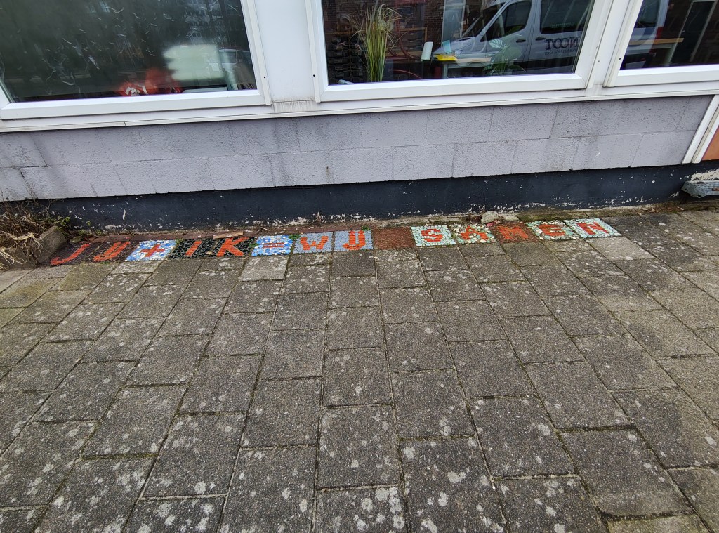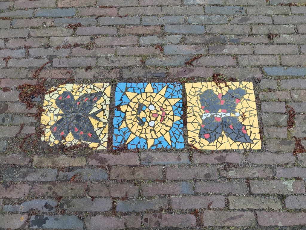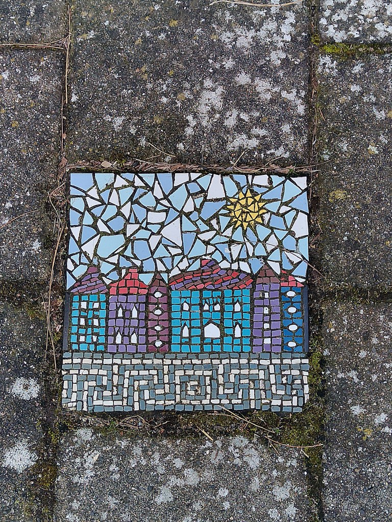 Opvallend zijn de vele mozaïektegels in deze buurt. Ze zijn in 2011/2012 door de buurtbewoners zelf gemaakt, een initiatief van een woningbouwvereniging. Er zouden er 430 (!) moeten liggen.