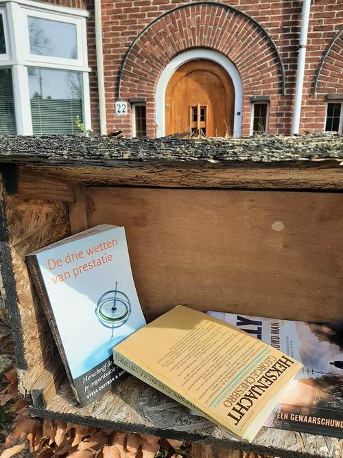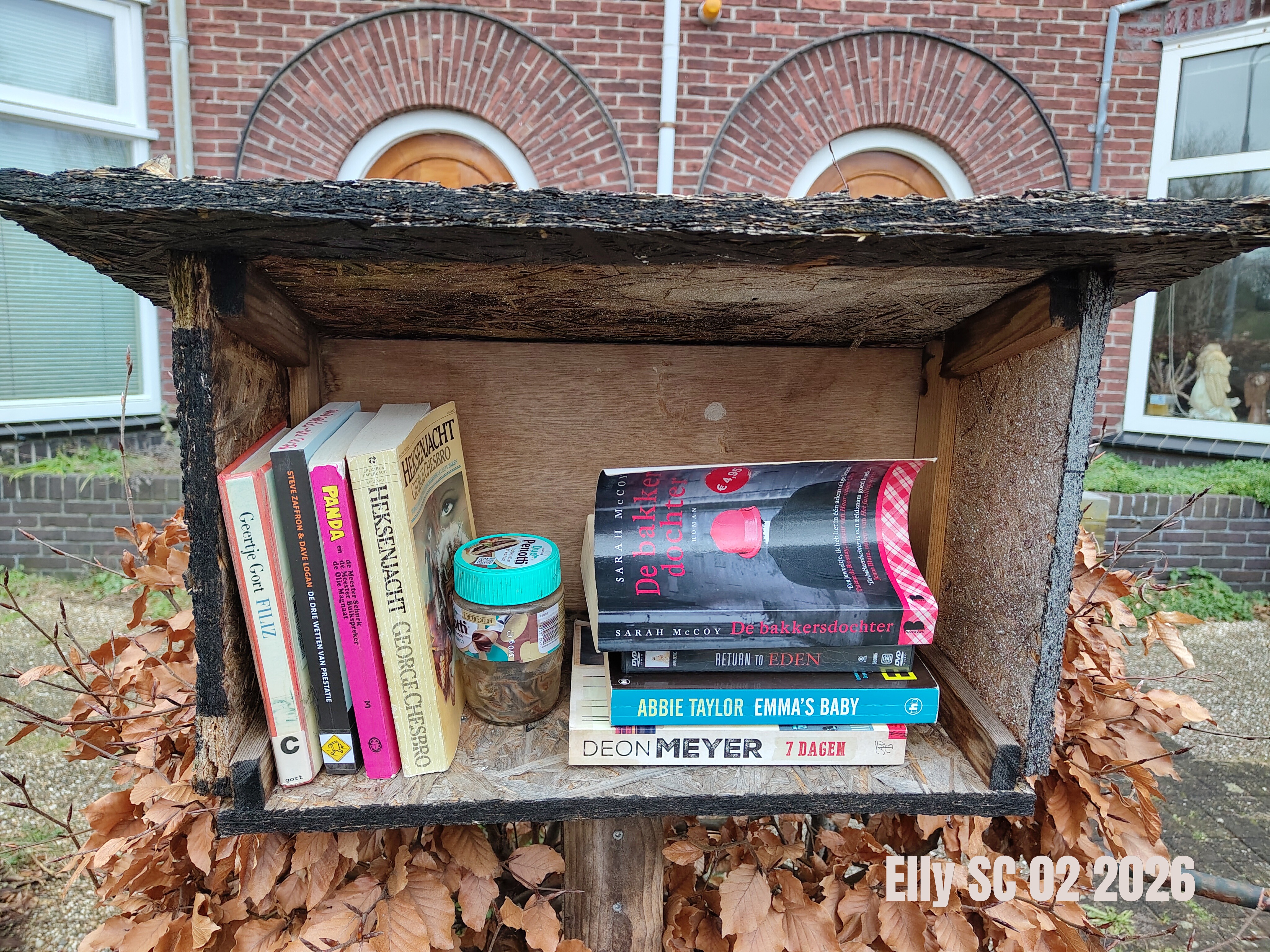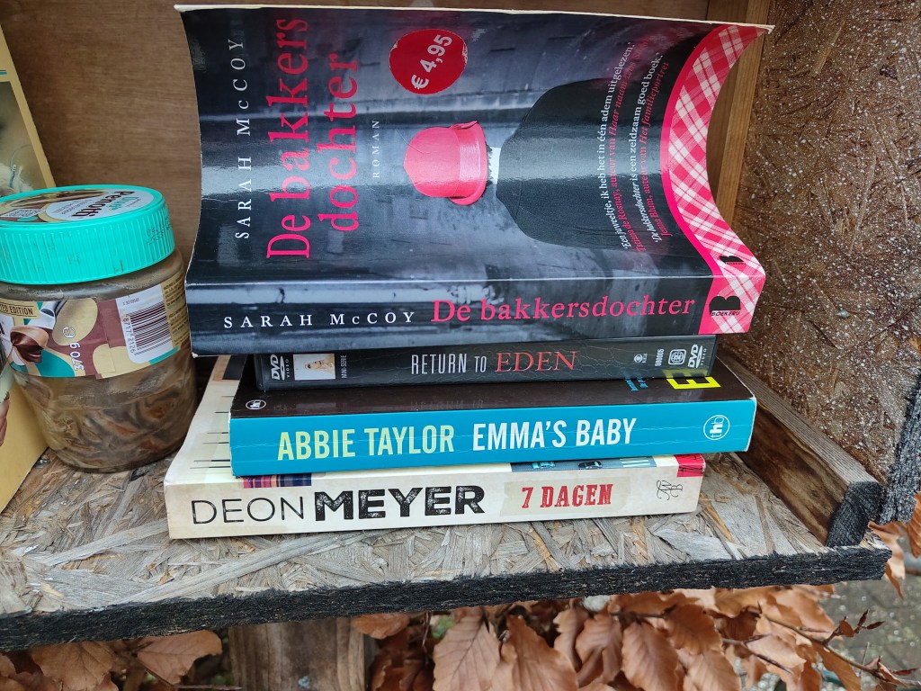 Elly SC: “ Heksenjacht staat er op dit moment nog! De overige boeken, én de pindakaaspot zijn weg. En nu het weer natter wordt, verwacht ik ook niet veel nieuwe aanwas.