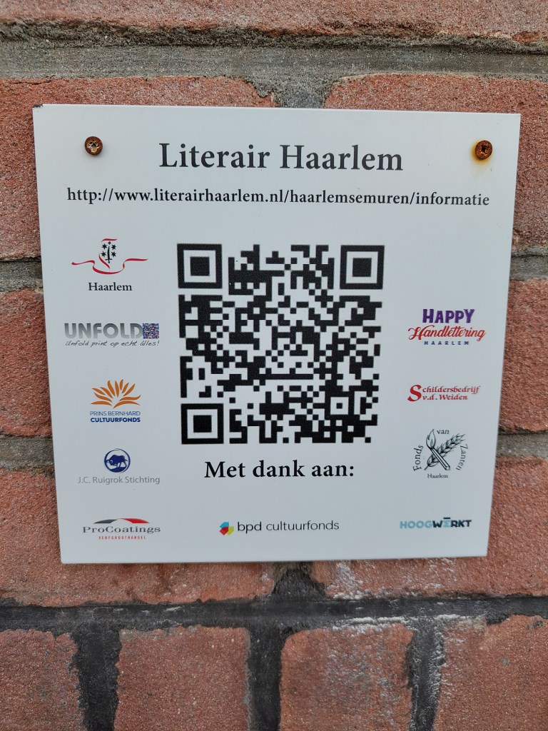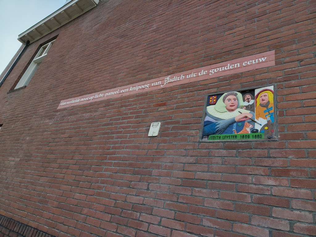 In de straat, schuin boven de bieb, is een gevelsteen van Judith Leijster gemetseld, gemaakt door o.a. Eric Coolen. Er is een gedicht bijgeplaatst door Literair Haarlem: Een verliefde noot op licht paneel, een knipoog van Judith uit de gouden eeuw.