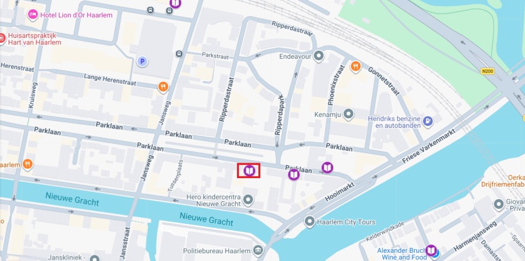 De minibieb staat vlakbij het Spaarne. Op de kaart van Jacques Zuiderwijk: Minibiebs Noord-Holland vind je deze minibieb (zie foto) en alle andere minibiebs.